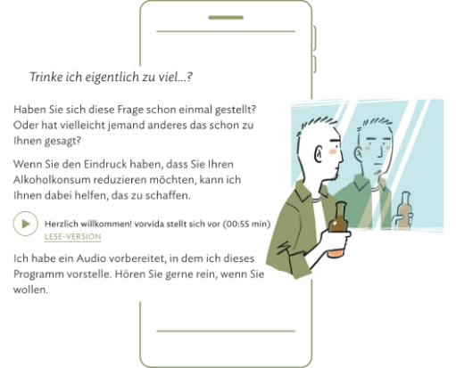 Mehr erfahrenvorvida ist dafür bestimmt, therapeutische Techniken und Übungen anzubieten, die auf evidenzbasierten psychologisch-psychotherapeutischen Therapieverfahren beruhen und die für Patienten mit schädlichem Alkoholkonsum oder Alkoholabhängigkeit geeignet sind, sie beim Management ihres gesundheitsschädlichen Trinkverhaltens zu unterstützen.